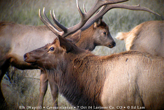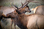 rutting season for the Elk as mature males vie over herds of cows: a young