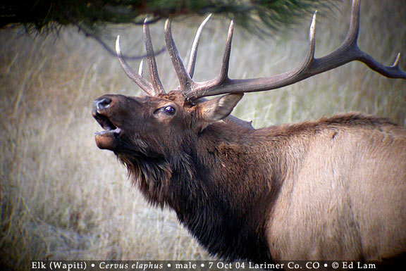 mature male Elk bugling. Their loud vocalizations are heard most often in the