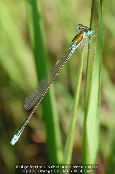![]() | Eastern Forktail (Ishnura verticalis) 0.8 - 1.3 inches in length. Field identifiable. For much of the Northeast, the first damselfly on the wing is the Eastern Forktail. In southern New York, adults usually emerge at the beginning of May. The image on the left was taken on April 17, 2002 the earliest recorded date for any damselfly in New York State. It was an unusually warm Spring and Eastern Forktails were seen on that same day in both New York and Westchester counties. Besides being one of the earliest damselflies, Eastern Forktails have one of the longest flight periods, and they can often be found well into Autumn until frost. They inhabit virtually any freshwater pond, lake or slow stream and are mostly found low among vegetation near or at the shore. The Eastern Forktail is probably the most common odonate in the Northeast so novice damselfly-watchers will quickly encounter it and should try to learn it well. | ||||||||||||||